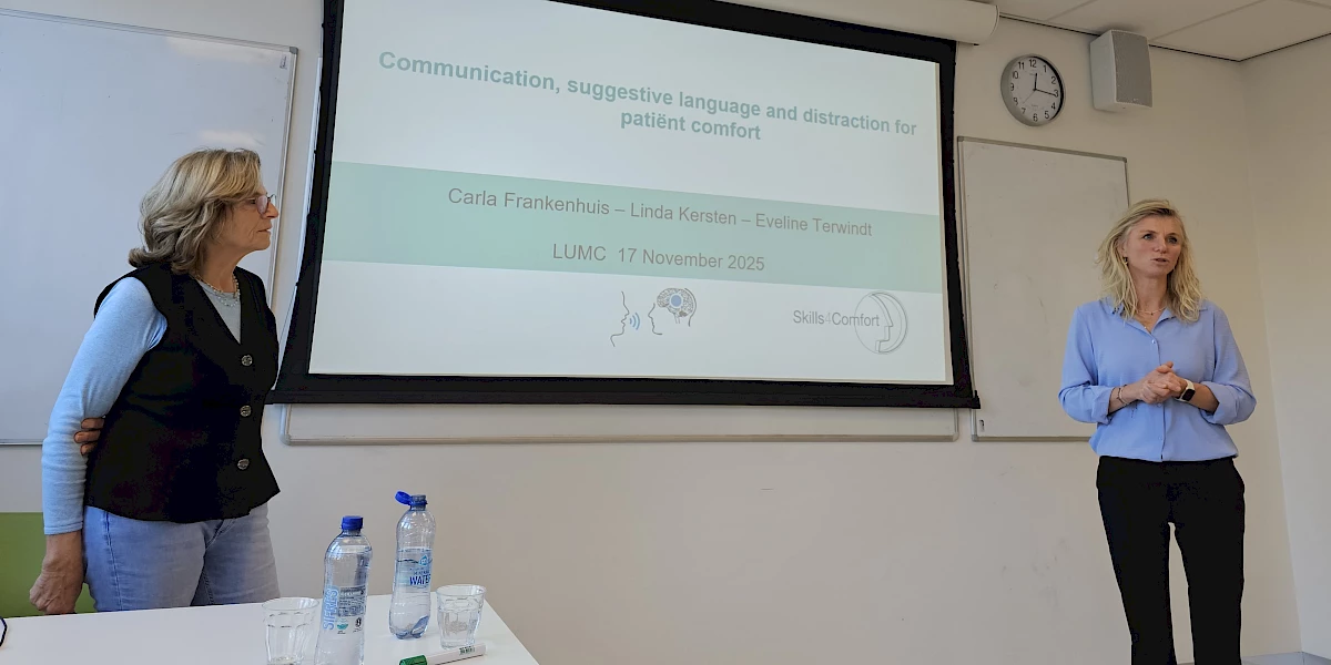 On November 17th, Eveline Terwindt, Carla Frankenhuis and Linda Kersten presented with great dedication to our IPS researchers at Leiden University on the scientific foundation and content of their accredited training program for healthcare professionals, Skills4Comfort. This training program is a great example of an evidence-based translation of research findings, on among other things placebo and nocebo effects, to very clinically applicable communication strategies. With this training, healthcare professionals can learn to enhance the placebo effect and reduce anxiety and pain during routine medical procedures, such as intravenous insertions or vaccinations.